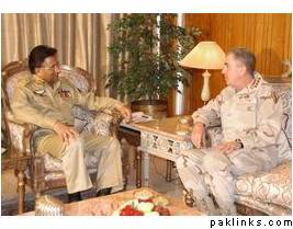 Chief of the US Central Command Gen. John Abizaid meets President Gen. Pervez Musharraf at President House in Islamabad Monday.