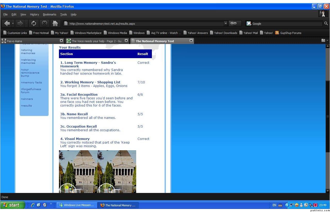 I gave him result at msn which wasnt super good as my memory is mashAllah se bakwas