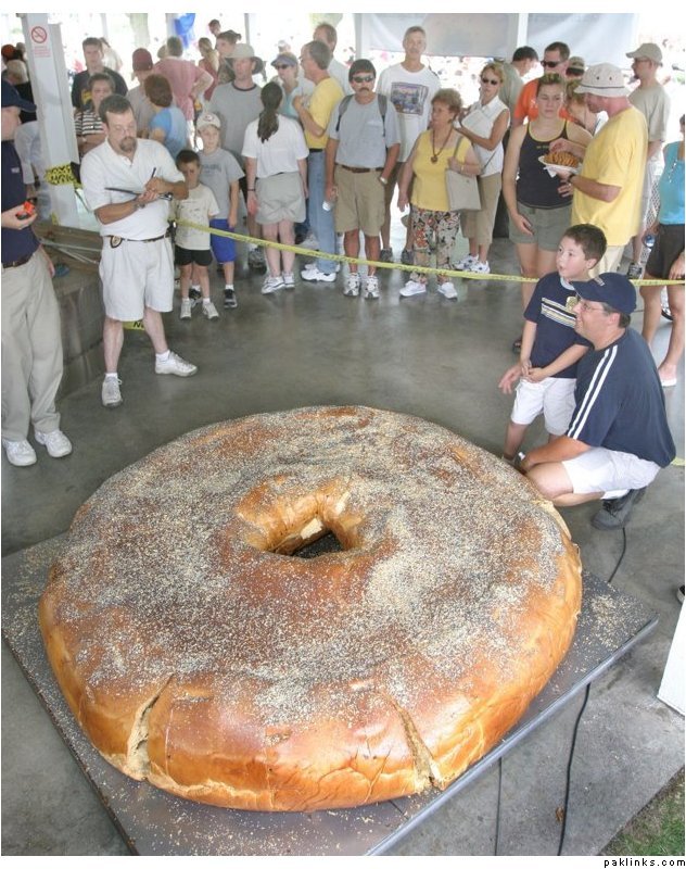 To many people, a cream cheese bagel is the perfect way to start the day, but attempting to consume this one for breakfast would be the ultimate challenge. Created by Bruegger’s Enterprises, it broke the world record for a bagel when baked in 2004, weighing in at an incredible 868 lbs (393 kg).