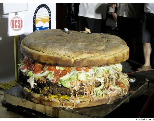 This enormous burger was produced at the 99th Annual Alameda County Fair in California, US. It helped to break the record for the world’s largest commercially available hamburger in the process, weighing in at a whopping 777 lbs (352 kg). This is what the word ‘supersize’ was invented for.