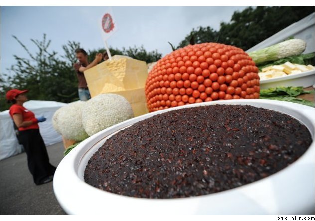 The prospect of cheese, pickle and tomato is enough to get most people salivating, but few would be able to polish off this enormous ploughman’s lunch. It was created at Battersea Park in the UK in 2011 and would surely leave any would-be consumer in a pickle.