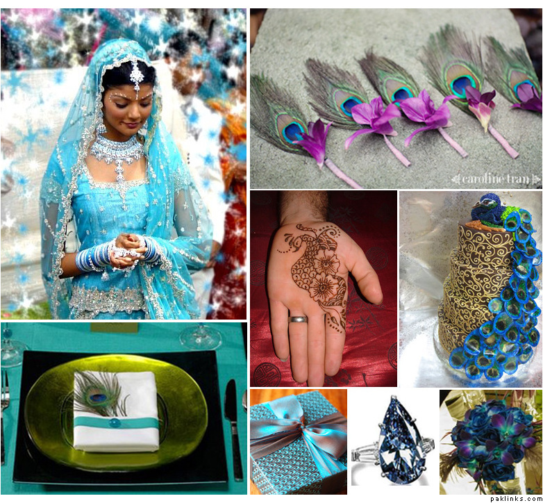 can anyone help me out with some peacock themed mehndi pics?? im contemplating on it, just dont know how to make it out! what color should I wear and what color should my close family wear? since i want them to some how mend with the theme as well!