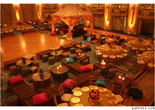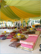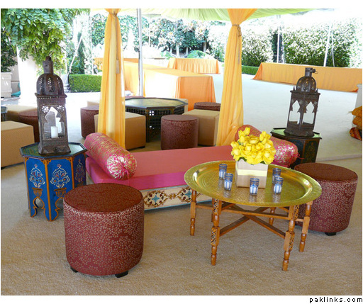 it could be very cute! i'm thinking colourful lehenga's, antique-looking silver jewellery, lots of matka's, maybe sit on a "thakhat" and have lots of those long, sausage shaped pillows (bolster pillows, i think they're called).