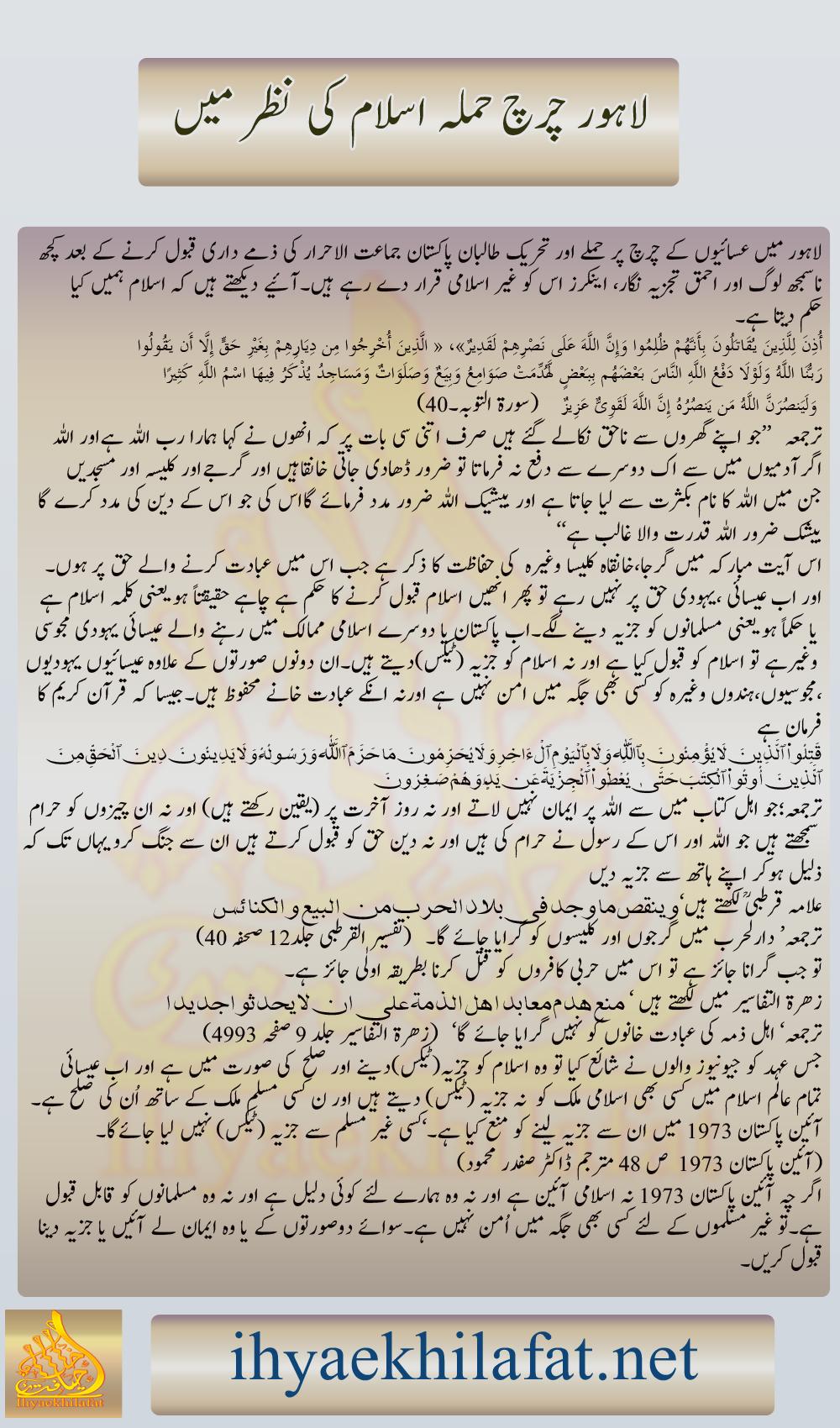 with wrong interpretation or wrong verse to justifying Lahore Church Blast.