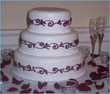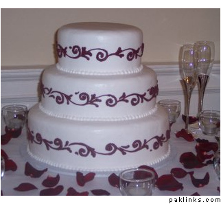 I have seen at some goar weddings, the motifs on teh wedding cake match those of teh laceon teh bridal gown. If you are planning to have a cake you can match teh colors and "kaam".