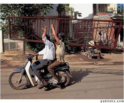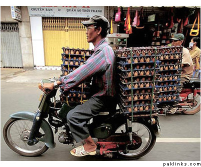 Pakistan is no different.. recently, there was a photo of a man riding motor cycle with deep freezer boarded at the back