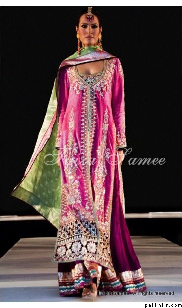 the long floral motifs on the jacket are made of dabka. Usually dabka is placed next to kora (gives a more delicate yet intricate appearance).