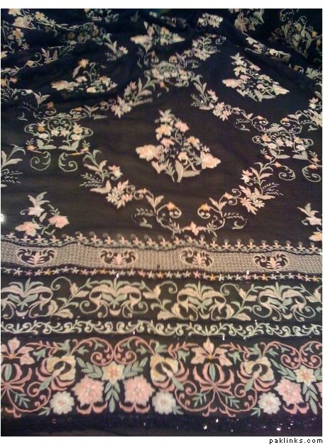 The black one is absolute beauty. Pink and black is the color combo so very IN! the shirt ends with three to four lines on black sequins and it looks stunning!! this doesnt need a second though! Shirt and sleeves like shown, back plain. fabric: chiffaun.