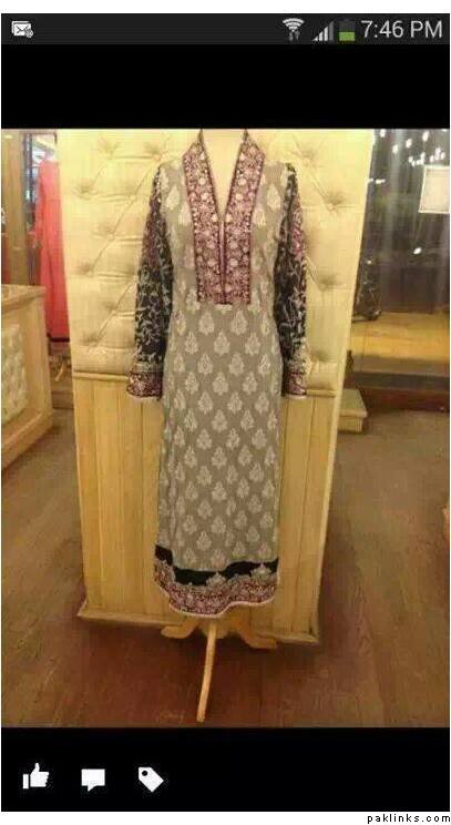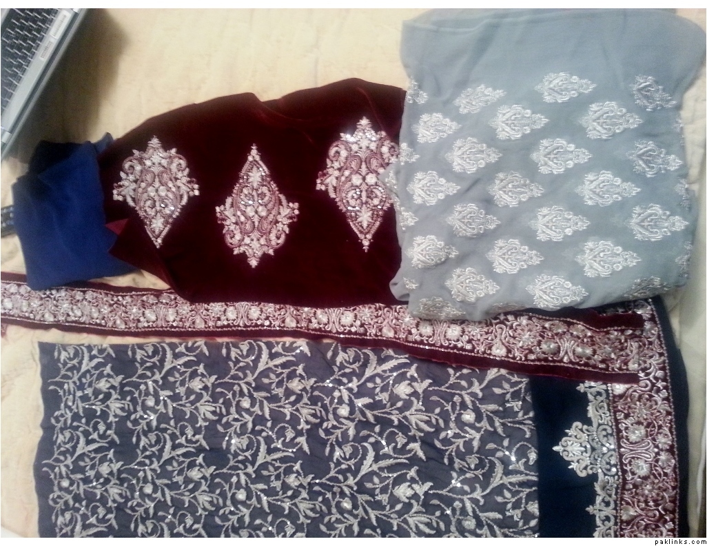 I bought this un-stitched suit from the Threads and Motifs on MM Alam Road a couple of months ago. Being the genius that I am I forgot to take a picture of the stitched sample they had in the store. Considering I’m probably not going to be getting this stitched now for at least a couple of years I wanted to find the picture so I could remember it when I need it. Does anyone have pics of this completed outfit? There’s about 6 different pieces to it.