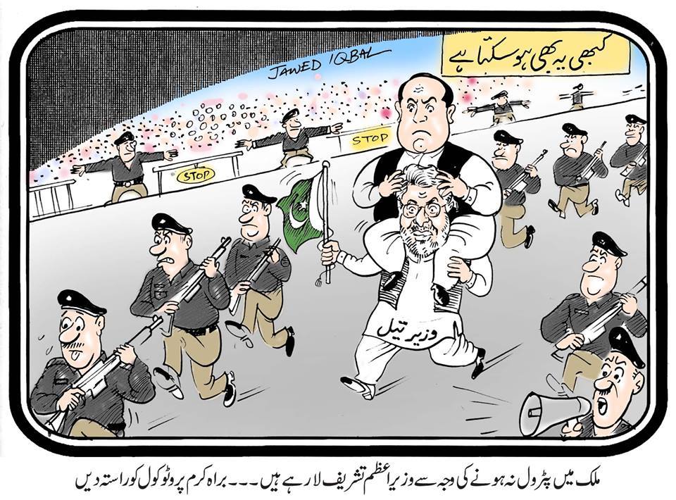 kal itni afwahen phelin ke sab ne tank full karwa die. main to subh gaya. 20 litre to tha gaRi main… 5 din nikal jate.. lekin phir bhi ihtiyatan full karwa dia. shareefon ki shar-afat ka kiya bharosa ![]()