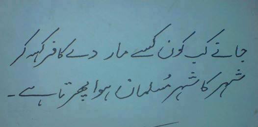 yuN kaheN k shahr kaa shahr baT gayaa firqoN meN! ![]()