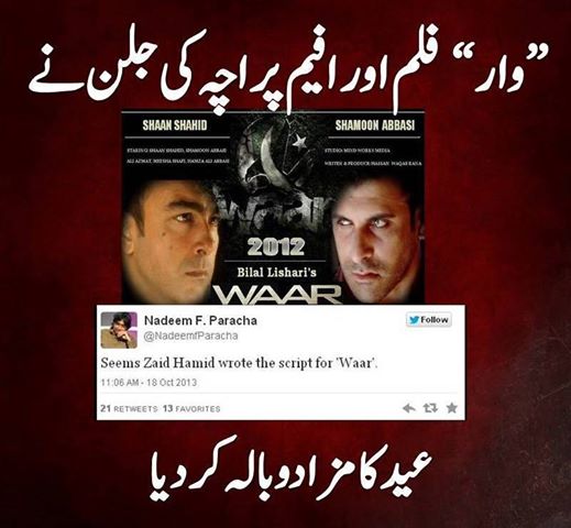 wo keh rahy hain pakistani cinema apny pairun py khara ho raha hy or agar aisa ho gaya to pakistan me indian movies ka dewalia nikal jaye ga.Me ny suna hy pori movie me india ka naam bhe nahi liya gaya(don’t know if it’s true)