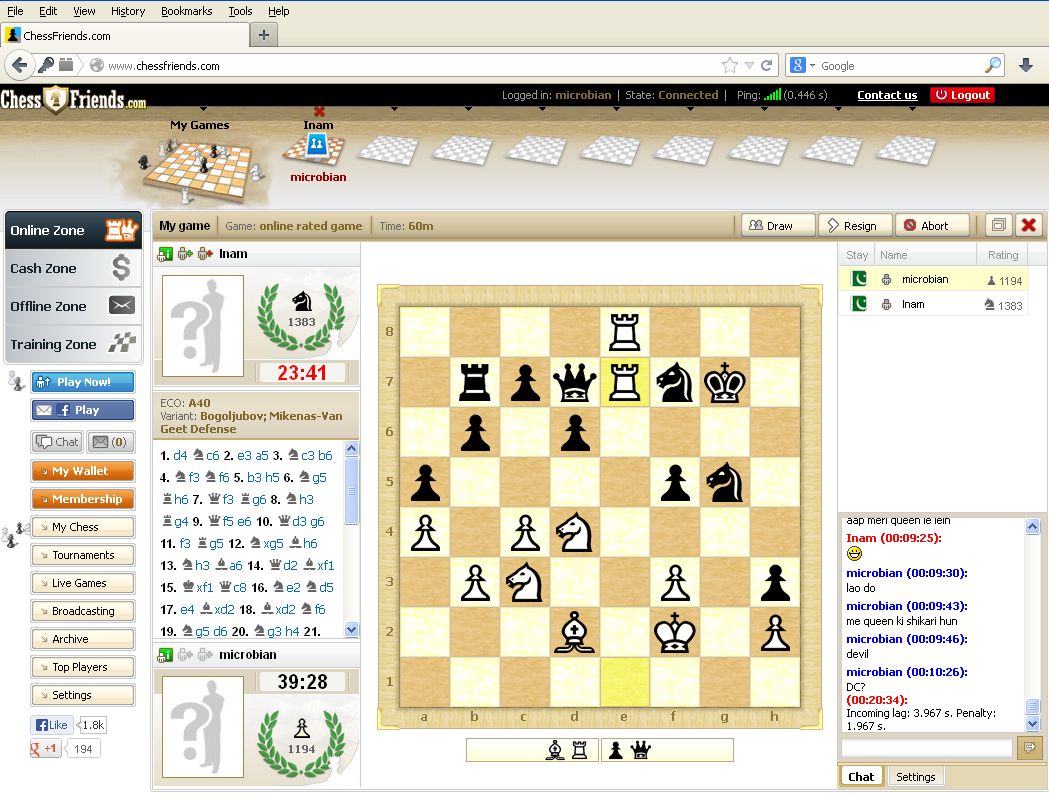 opponent ki queen hy with 2 knights and a castle and i have 2 castles, 1 bishop and 2 knights ![]()