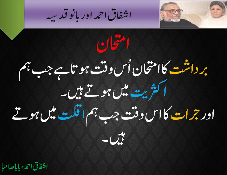 **Bardasht **ka imtehan us waqt hota hai, jab ham **aksariat **main hoty hian-