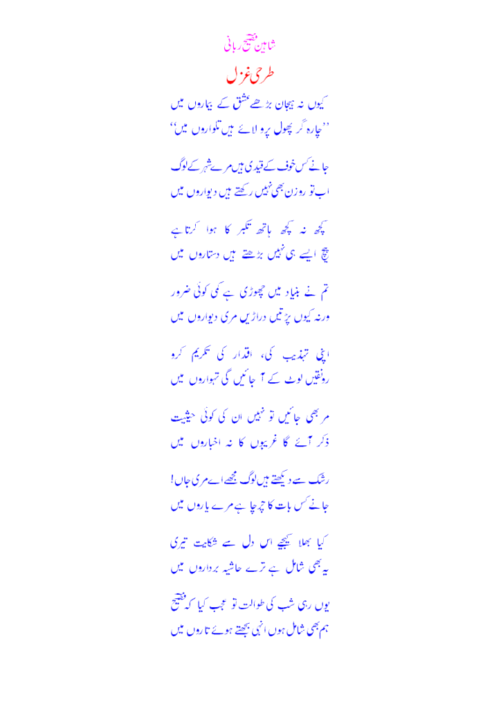 waisay yah “charah gar phool pro lay hain talwaroon main” kis key poetry hay ![]()