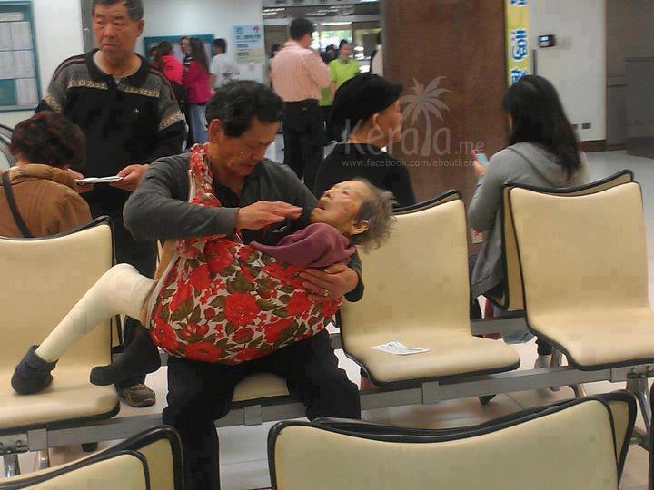 A touching photo from a hospital in Taiwan. A son feeds his mother the way she fed him when he was a child..