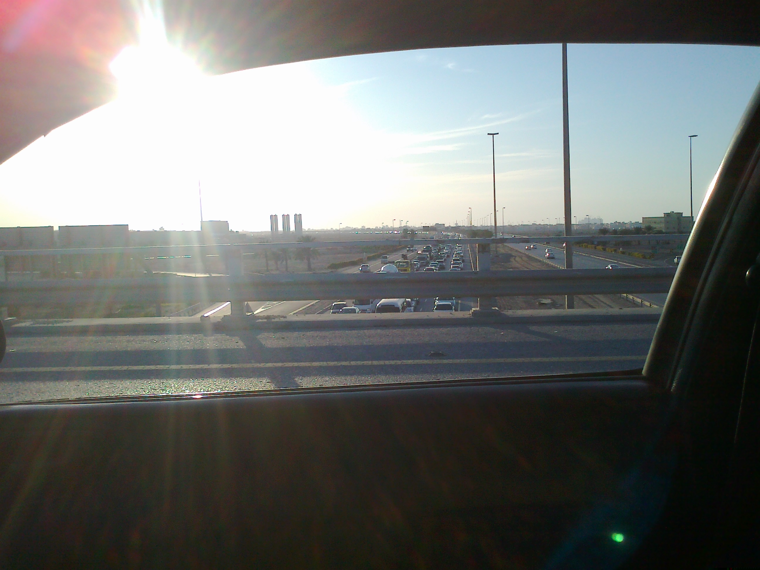 Photo taken inside from my car while driving on a bridge. If you zoom and see its a 20km long highway which is jam due to traffic rush.