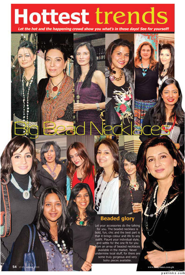 Well, beaded over sized necklaces seem to be in. Haven’t seen them on local females but the celebs are flaunting them everywhere. Someone also said that she might consider ‘bib necklaces’ as gifts for her bridesmaids (desi ones, too).