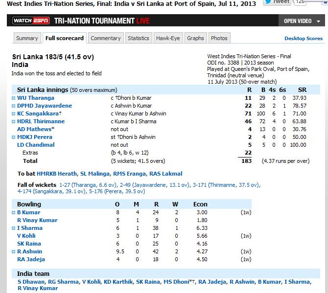 Live Cricket Streaming | Watch Cricket Online-India vs Sri Lanka Final 2013