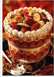 There are six layers in this trifle, starting from the base: pears, cherry-filled sponge, cream, cherry-filled sponge, pears and finally custard.