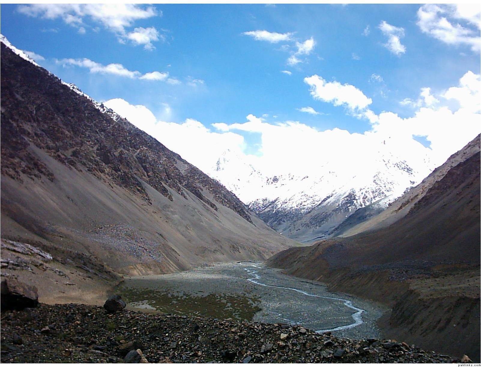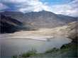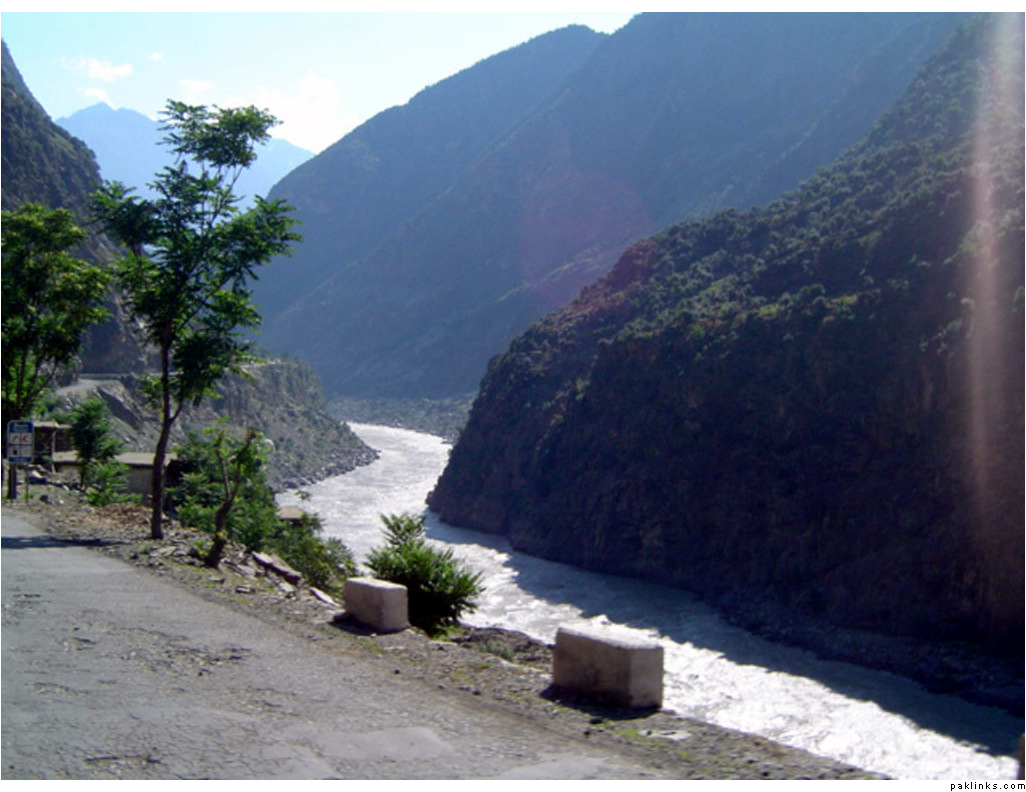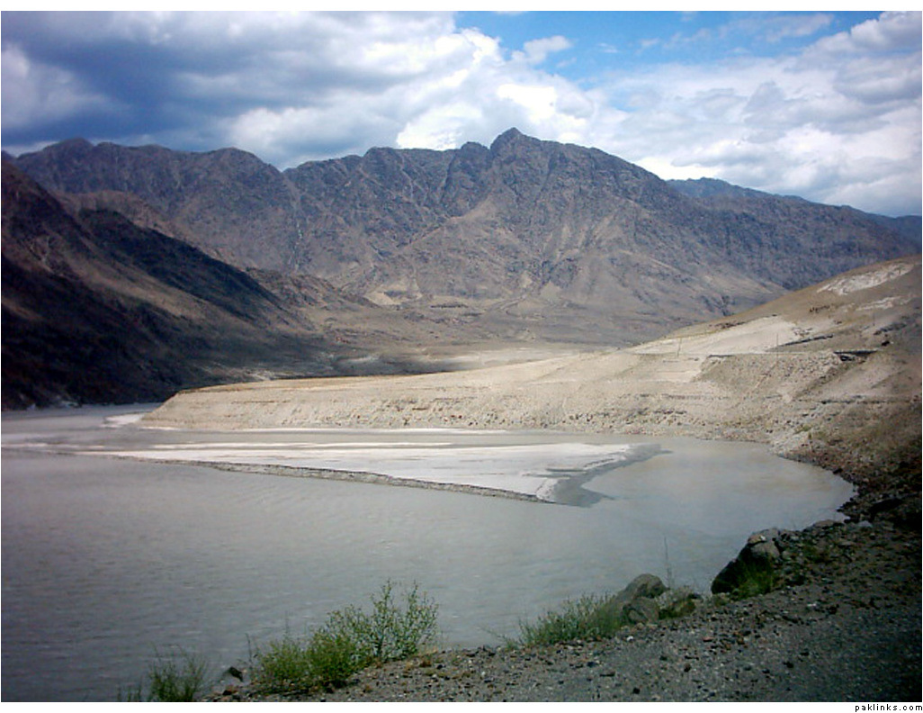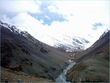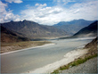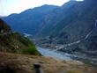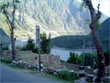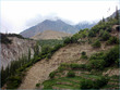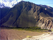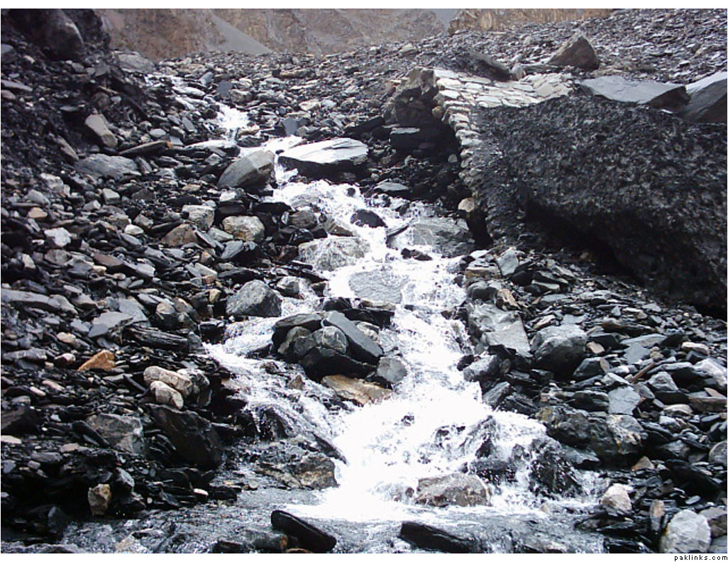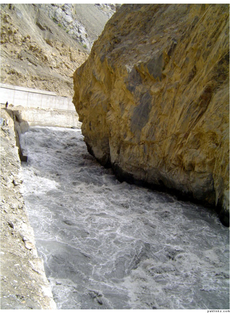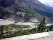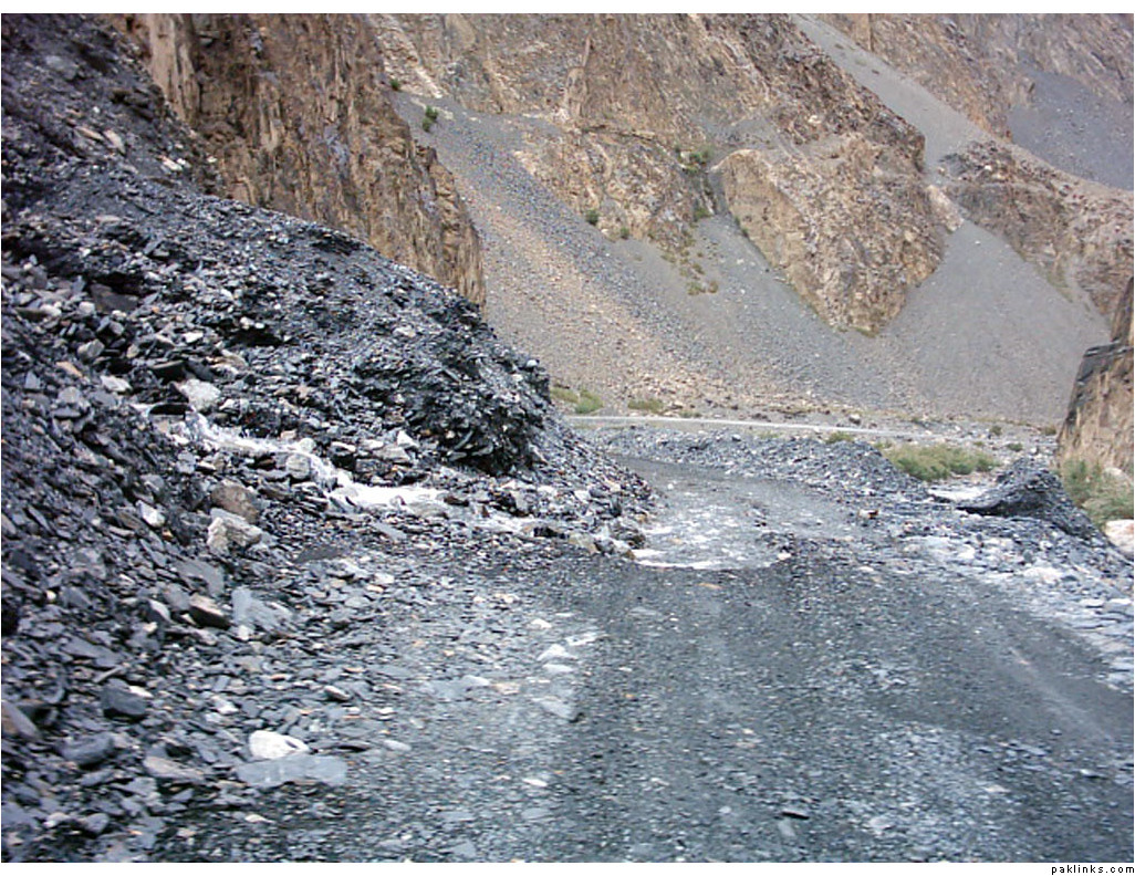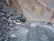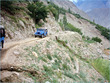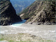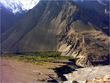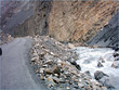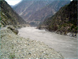 ** The first picture is of the landslide area. Stones continuously came down from the slope when we passed it. The second picture shows the tributary of river Indus. The water passed so fast that it was impossible to hear anyone.
