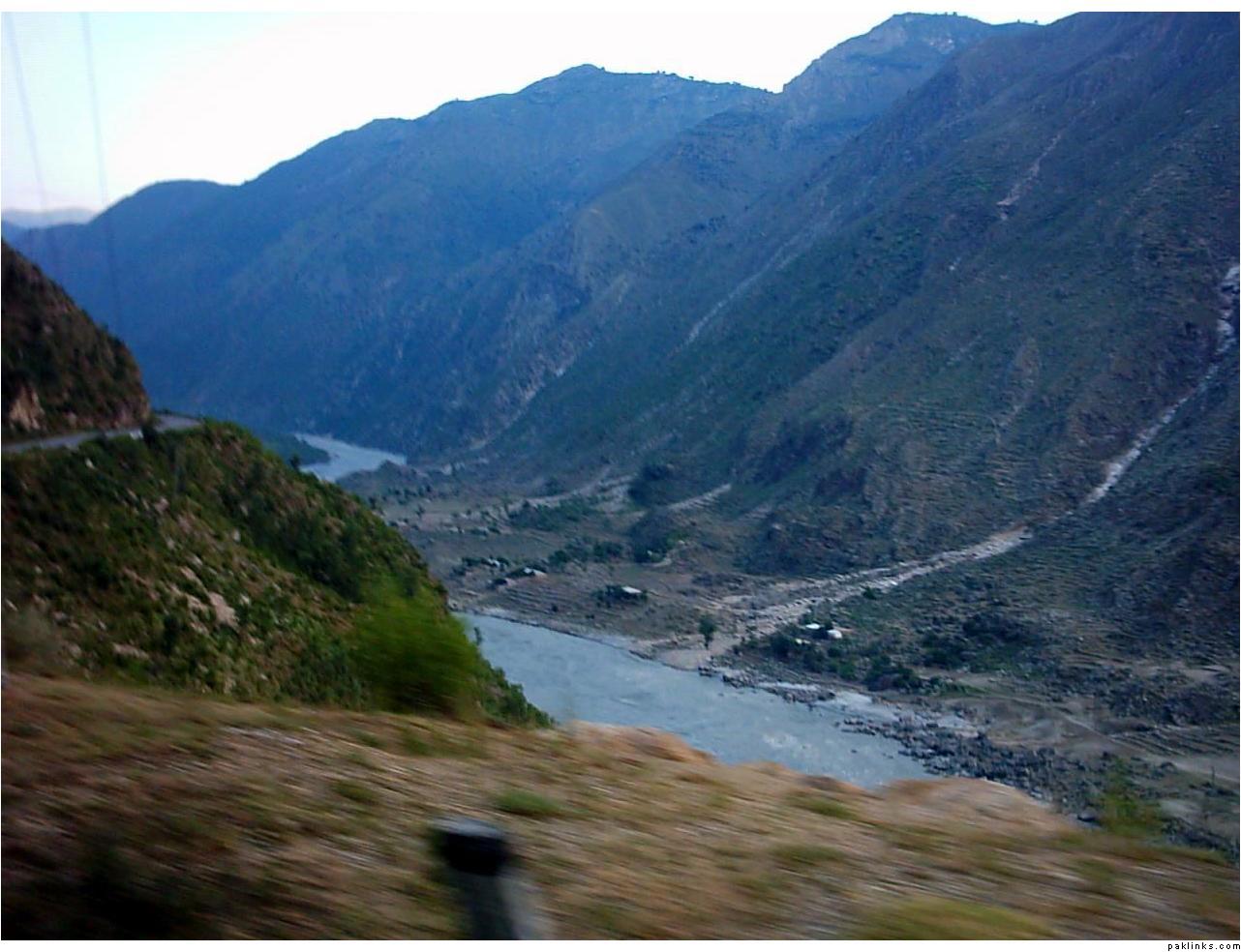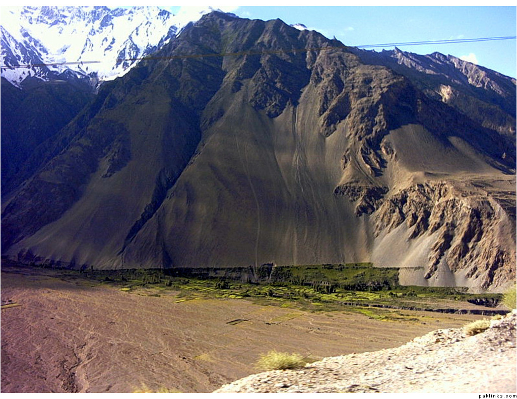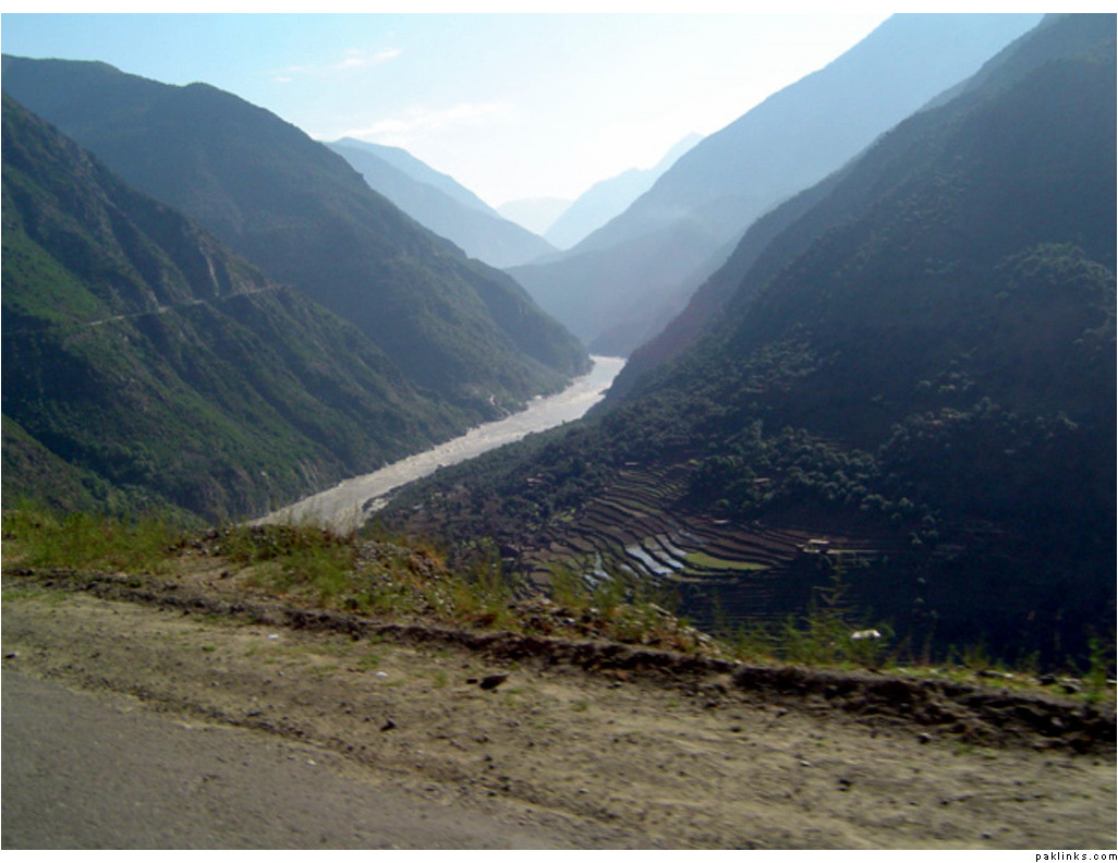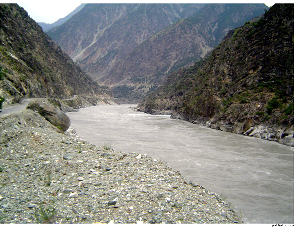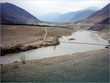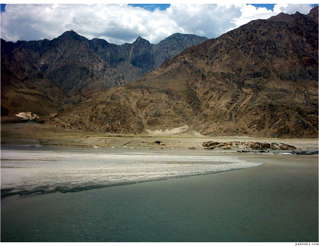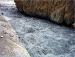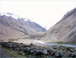** The first picture is of the landslide area. Stones continuously came down from the slope when we passed it. The second picture shows the tributary of river Indus. The water passed so fast that it was impossible to hear anyone.