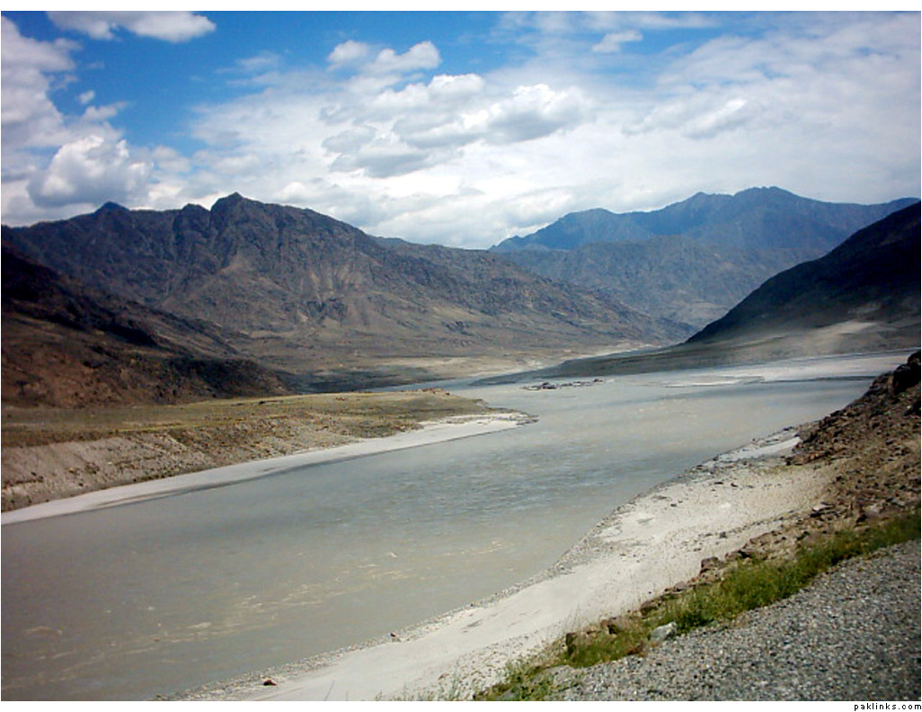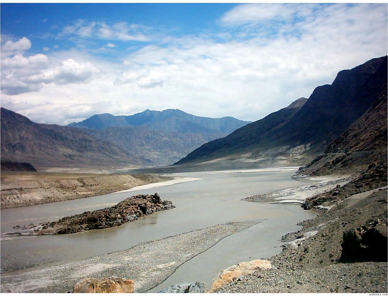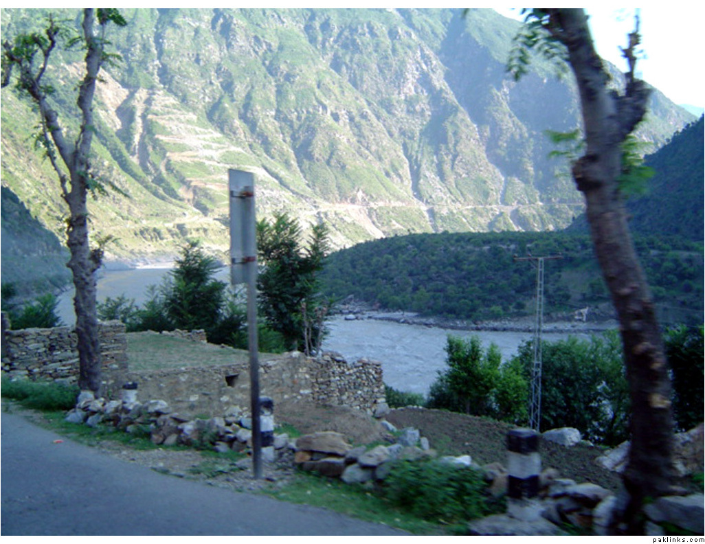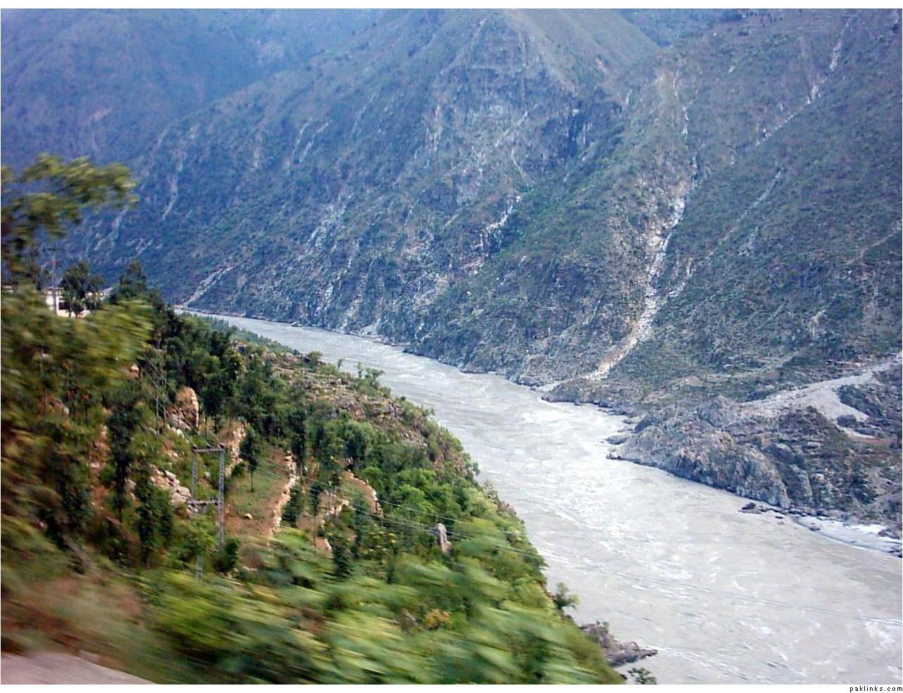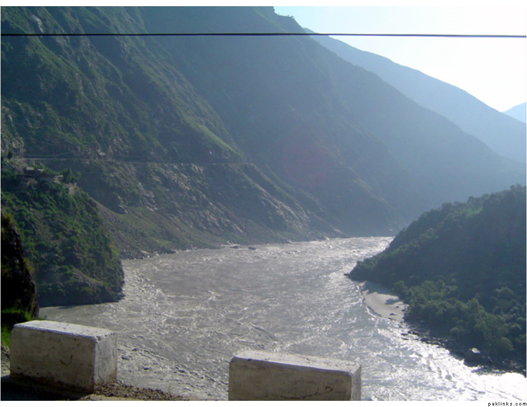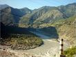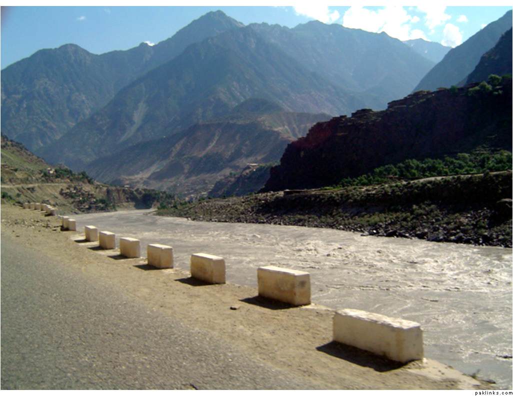 ** The first picture is of the landslide area. Stones continuously came down from the slope when we passed it. The second picture shows the tributary of river Indus. The water passed so fast that it was impossible to hear anyone.