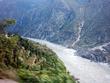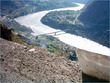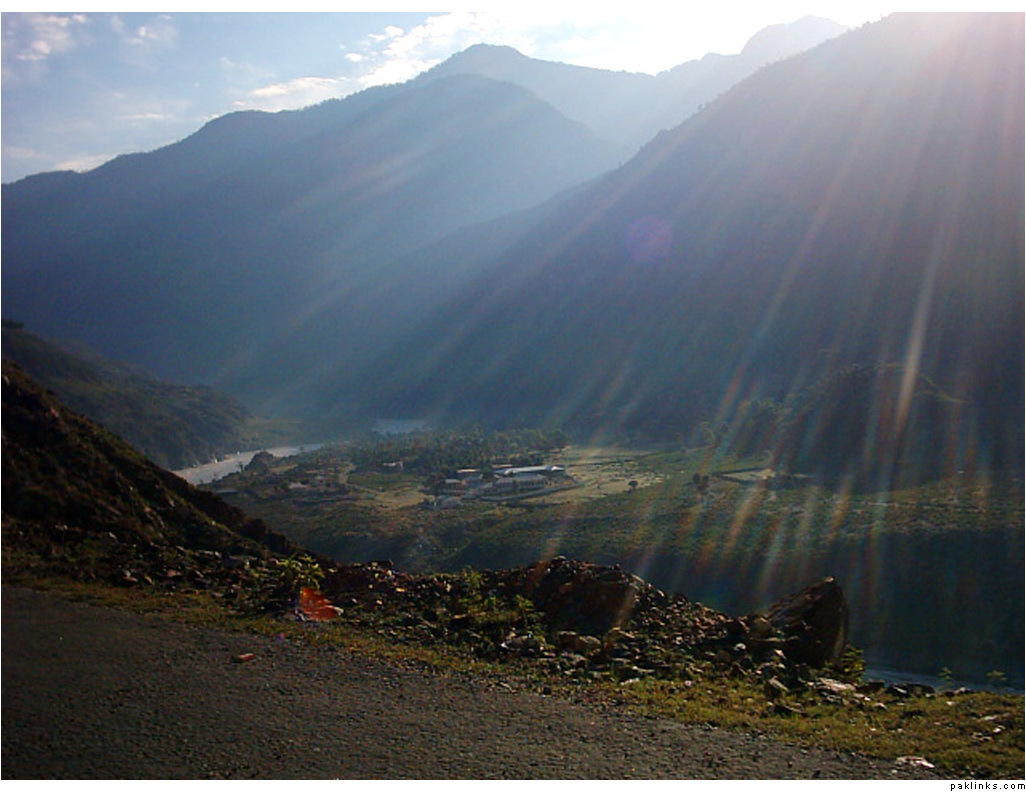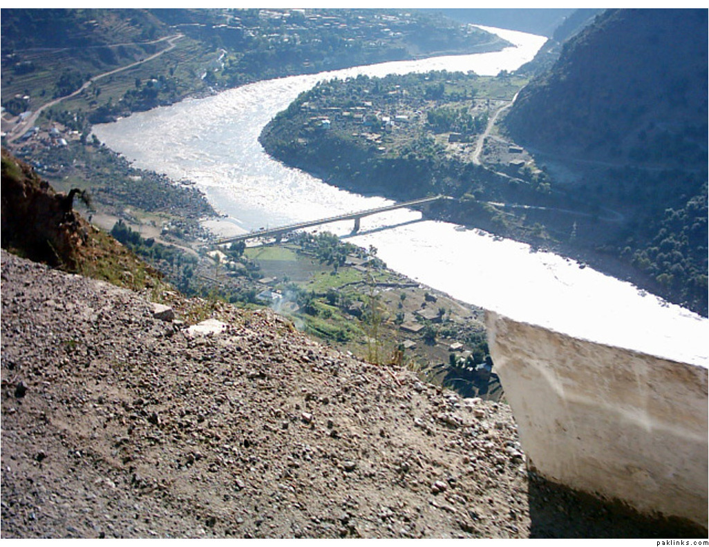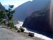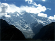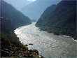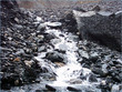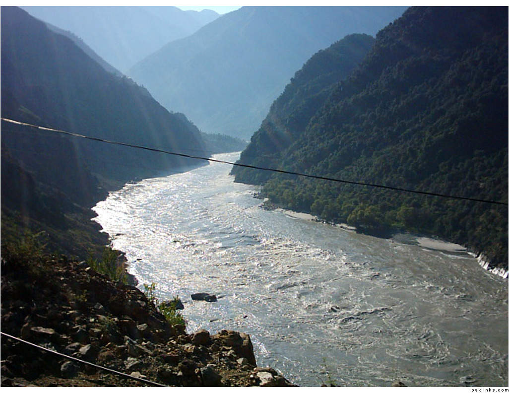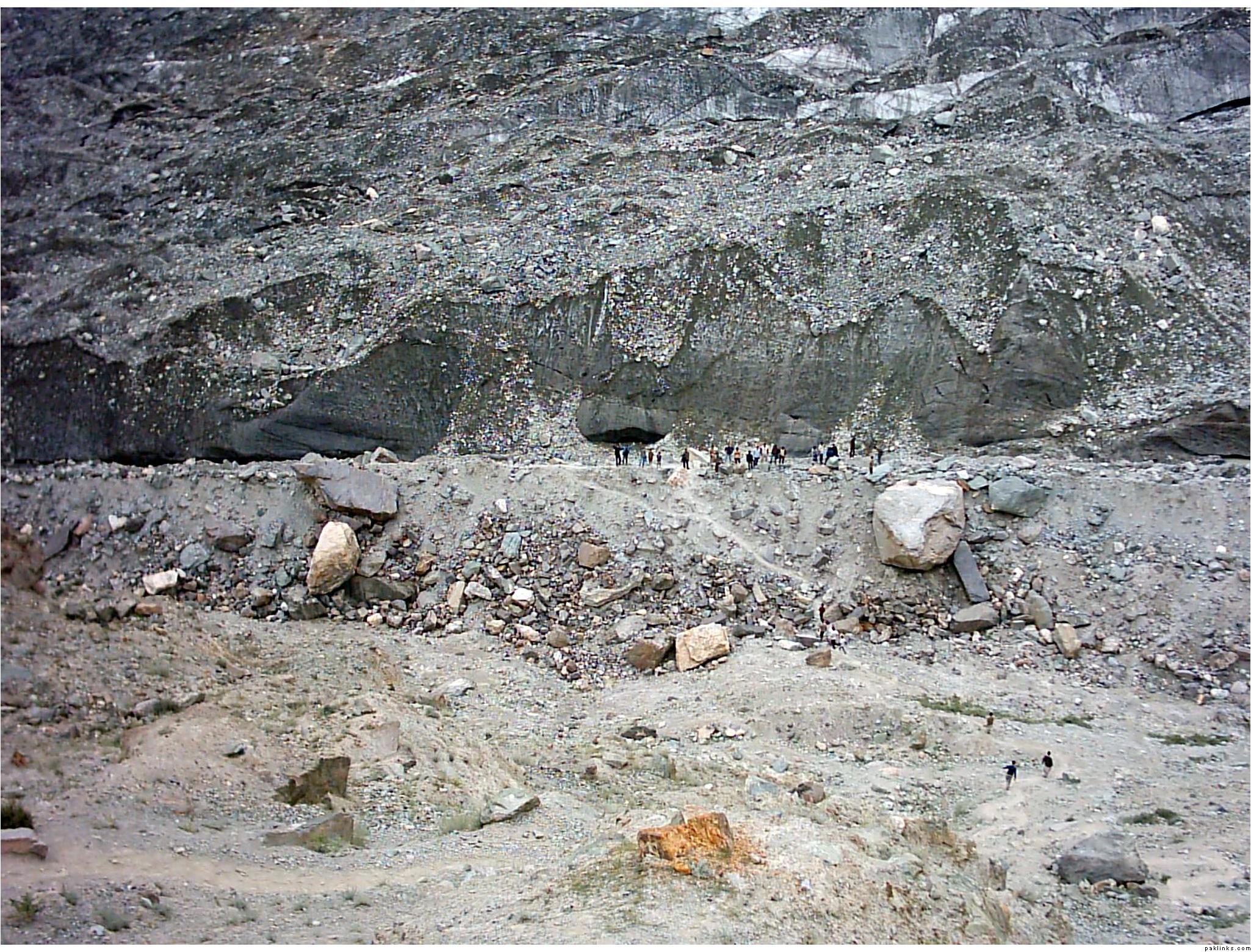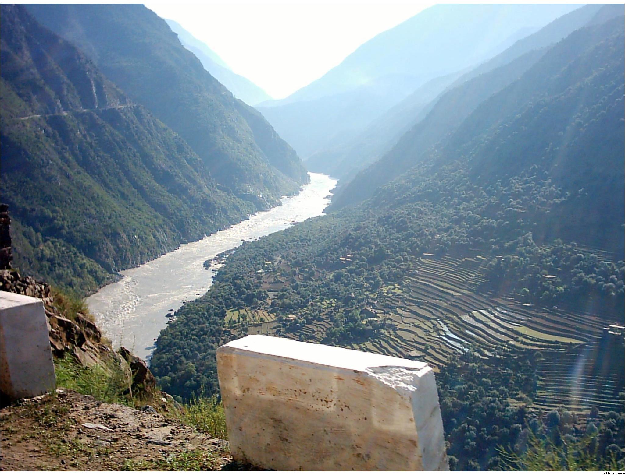 ** The first picture is of the landslide area. Stones continuously came down from the slope when we passed it. The second picture shows the tributary of river Indus. The water passed so fast that it was impossible to hear anyone.