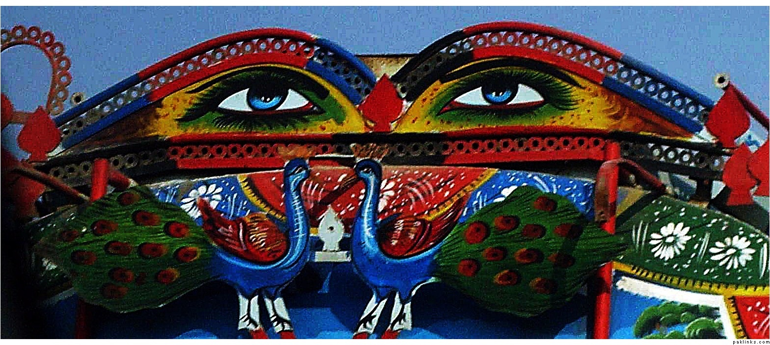 India meN trucks itne nahiiN sajaaye jaate magar haaN maiN ne rickshe [pedal rickshaw] zaroor dekhe haiN jin par taraH taraH kii shaa’irii likhii hotii hai :)**