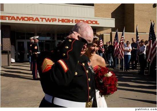 I came across this couple’s wedding pictures… the groom went to fight in the war in Iraq, and when he came back he married the girl he was in love with. It’s so touching and sweet, i’m a sucker for happy endings man.