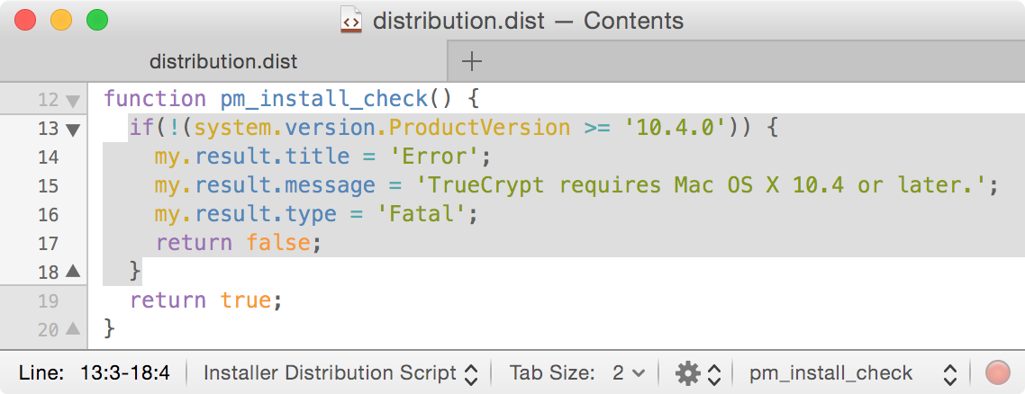 Note 1: It basically checks to see if your OS is 10.4 or higher and as 10.1 is lower it fails.