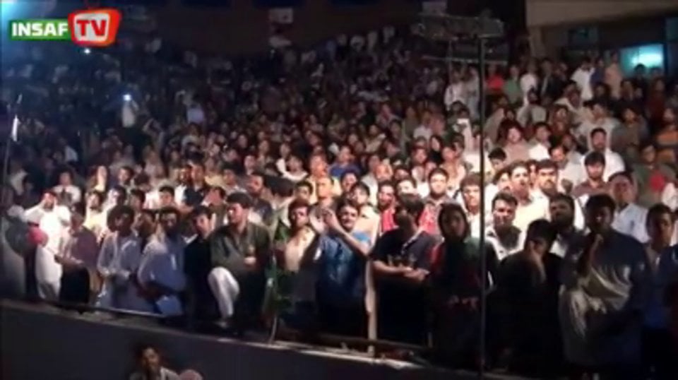 Tabdeeli Express - Imran greeting his Tabdeeli Razakars at a rally in Lahore, April 20th.