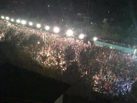 Growing crowd waiting for the last speech of Imran Khan as Pakistan Tehreek-e-Insaf's Chairman, Next speech will be as a Prime Minister of Pakistan insha'Allah (God Willing).