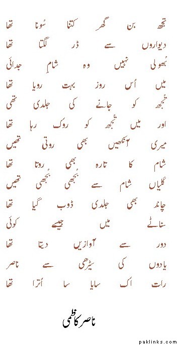 Typical Nasir Kazmi style.. Sannata, bujhi hui shamen, Tanhai. :(