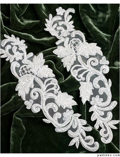Used in the same way as dabka but rather than a coiled metal wire, is flat metal wire coiled in an angular way. It’s also not as robust as dabka.