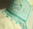 Chain Stitch done with a hooked needle. This can also be done using gold and silver threads but is a lot more difficult as the threads are much thicker in comparison. Some examples can be seen the the above pics (used for outlining).