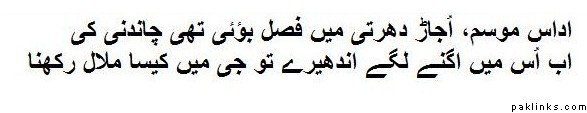 Shair kehta hy Jis khait main pichly sal kapas boi thi ab is sal singhary uga diy hain, tu udas kia hona khud hi yeh kam kiya hy:cb: