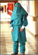 The burqua-style gowns come with trousers, two styles of head-dress and elasticated cuffs to prevent women’s arms from being revealed.