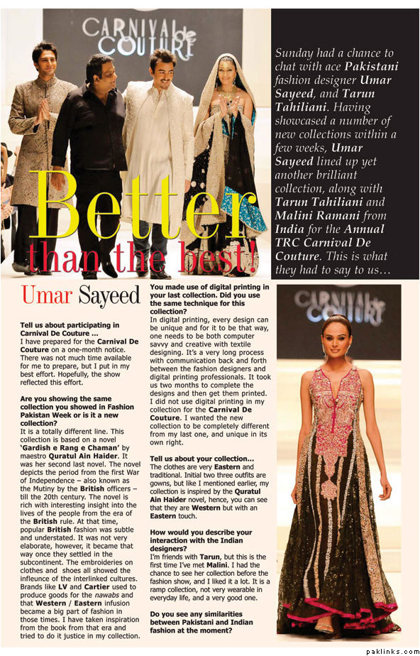 Re: Umar Sayeed's New Collection at Carnival de Couture
