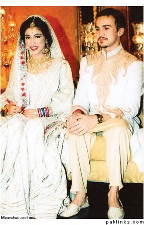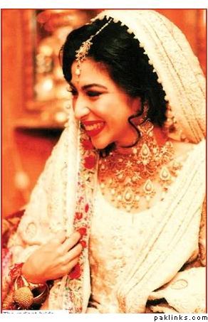 Vaneeza wore a very pretty US creation on her wedding..it was a long ivory kameez and a purple sharara with a six-foot train.