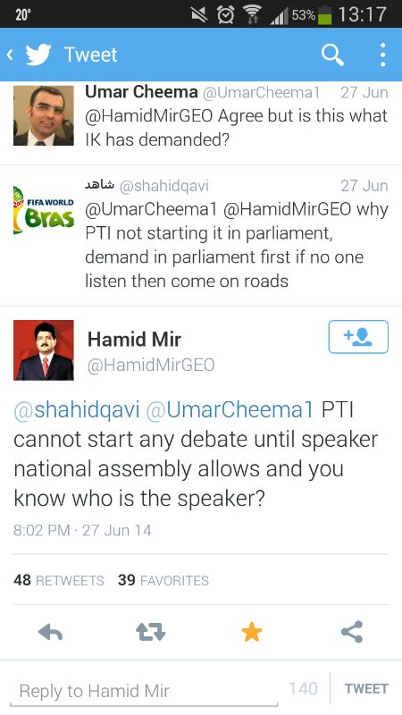 The proposed mob threats by Mr. IK to influence the courts by proposed long march on 14th august where policeman will be hanged personally by Mr. Khan is a pathetic attempt. The fact is that Mr. Khan is not willing to propose electoral reforms in the assembly which is the right forum to raise these issues and where a meaningful solution can be found.