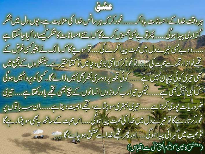 (’’عشق کا عین‘‘ از علیم الحق حقی سے اقتباس)