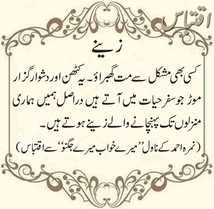 **(نمرہ احمد کے ناول ’’میرے خواب میرے جگنو‘‘ سے اقتباس)