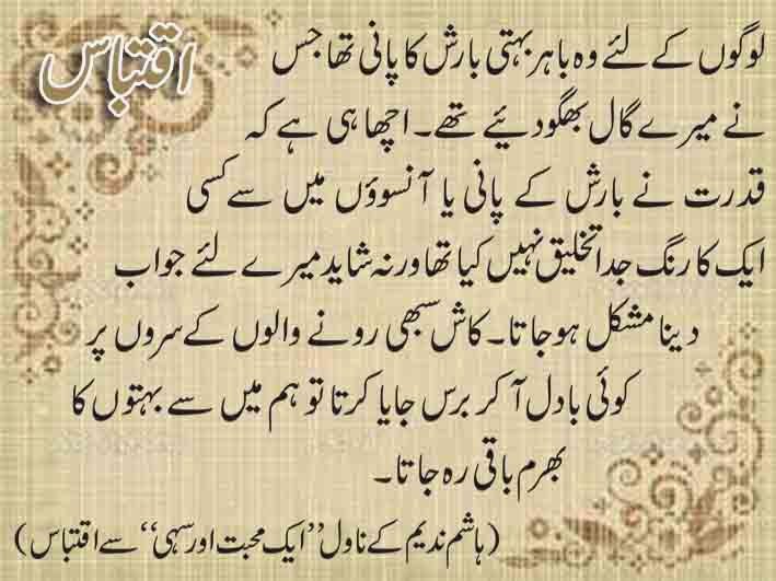(ہاشم ندیم کے ناول ’’ایک محبت اور سہی‘‘ سے اقتباس)