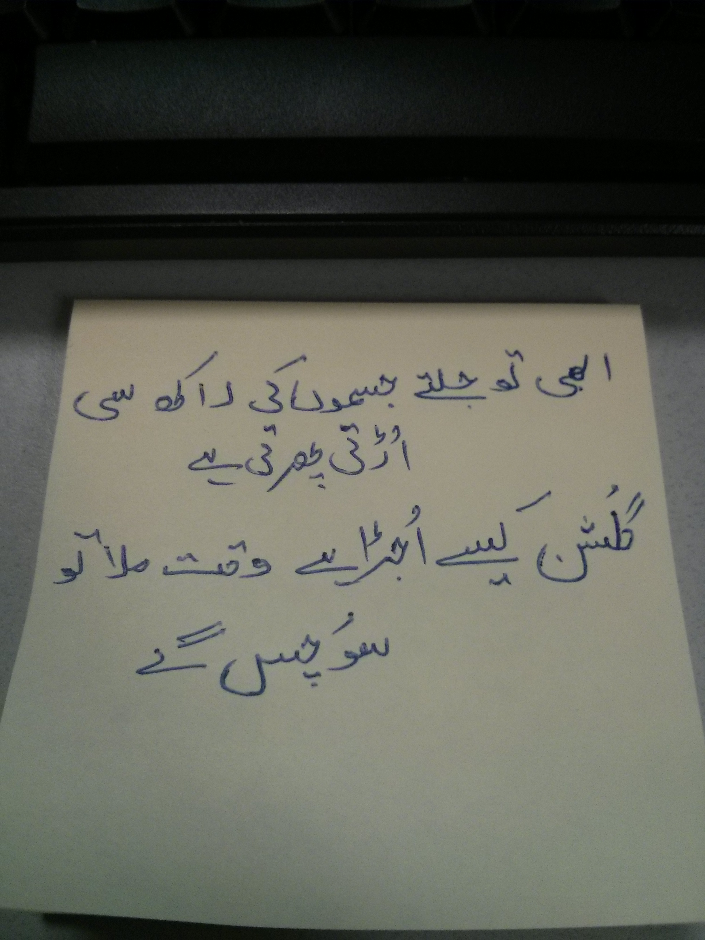 I can’t read *that *type of Urdu, my eyes and head hurts and for same reason, I’m very bad with reading hand written text. I can only read printed Urdu that’s not so closely joint and the words are not overlapping.