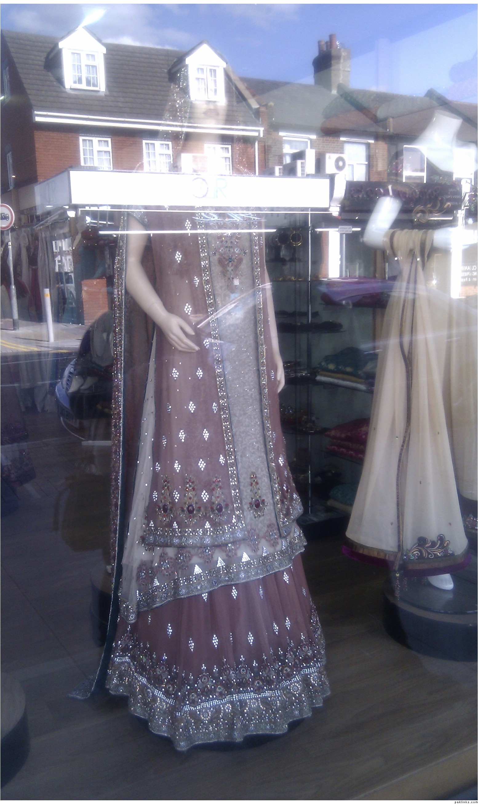 In my opinion the outfit's quite heavy lol. I think it would make a good walima outfit or something. This was a random shop on Ilford Road, London. I'm sure it was a replica as I've seen it somewhere before....I could be wrong though!