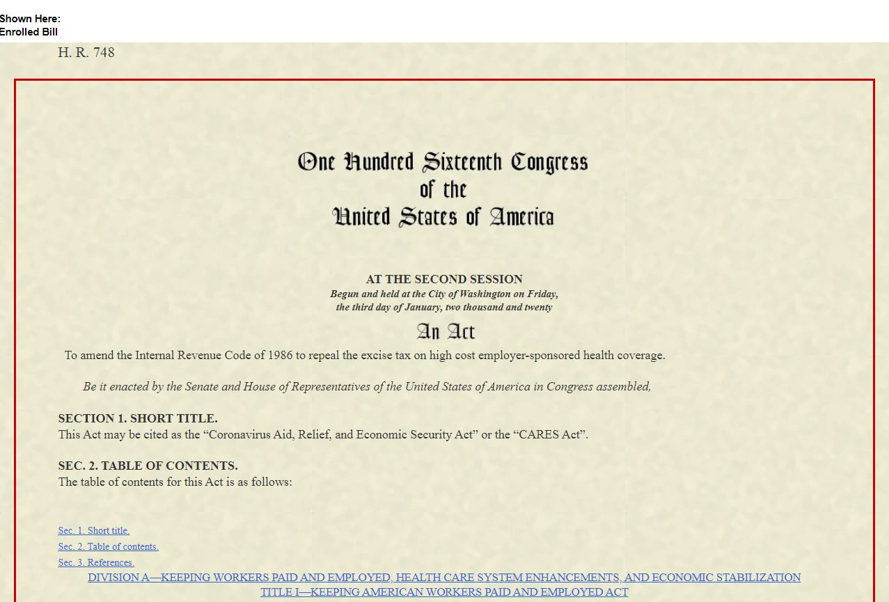 The bill was originated for some other relief / activity, but as SID_NY said it was modified to accommodate for COVID in 2020. As for the hysteria and mortality numbers we can partly blame scientists and data-modeler but this was first of a kind ‘contagion’ flu virus which rides on a person for unknown number of days before showing symptoms. It can be fatal for many people with underlying conditions hence the precaution is still necessary.