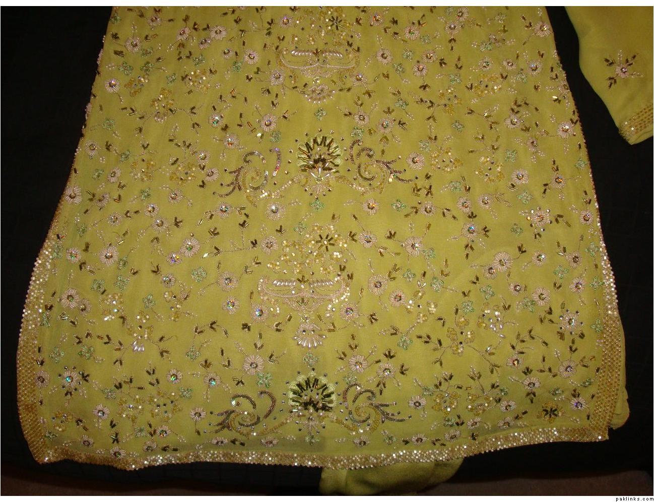 Indian designer - Rabani & Rakha. Pajama pants. This one has an approximate 6 inch lower back cut in the same shape as the front. Shirt has full work on front and back.