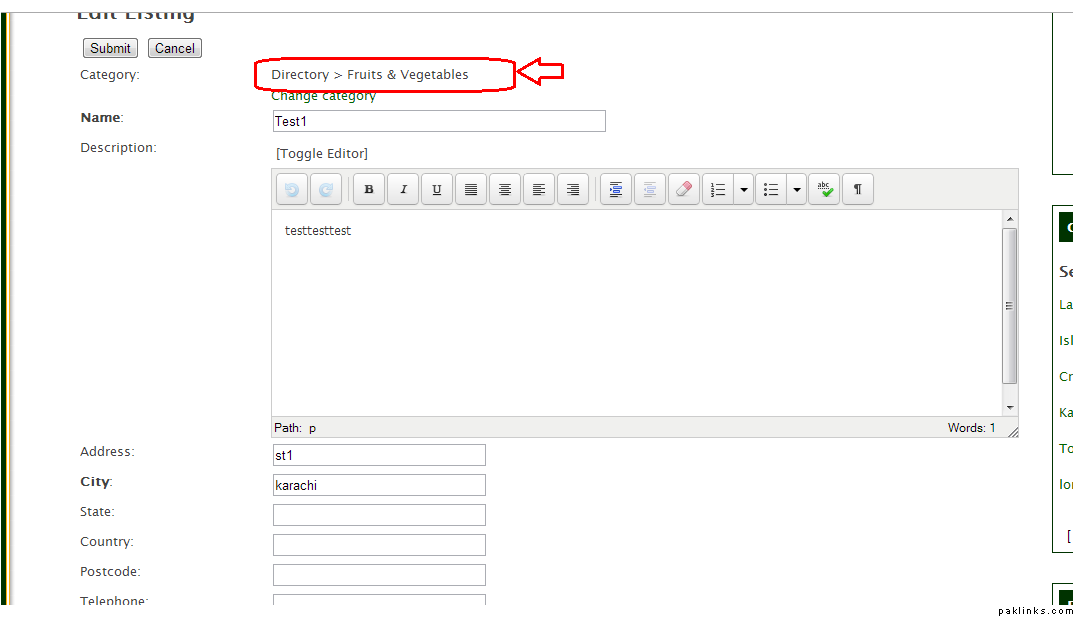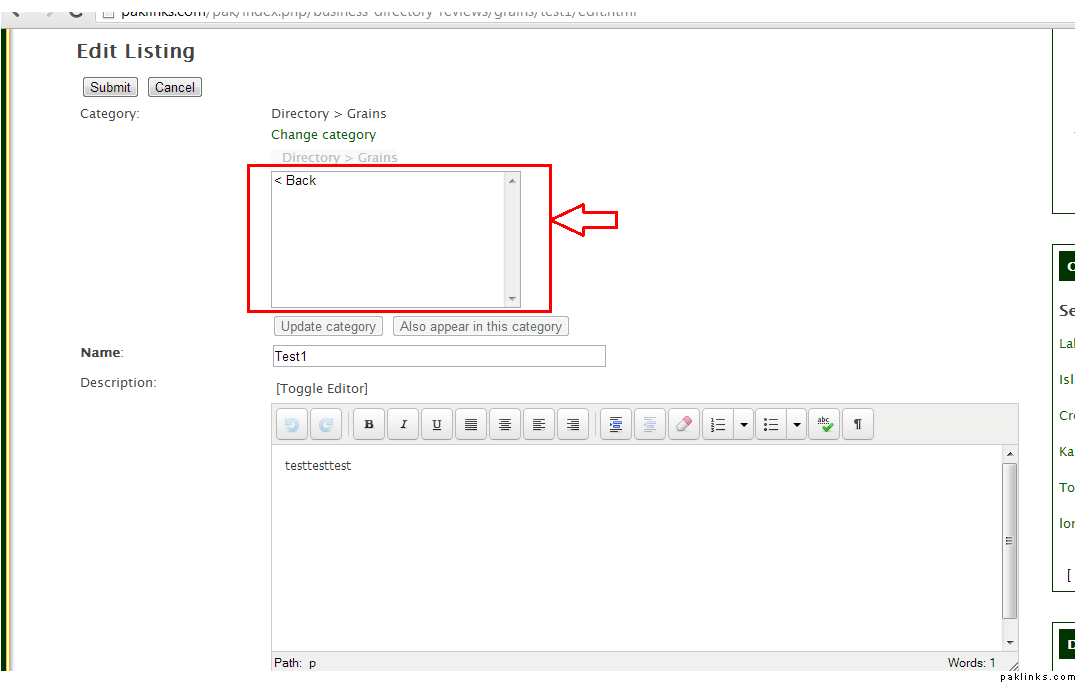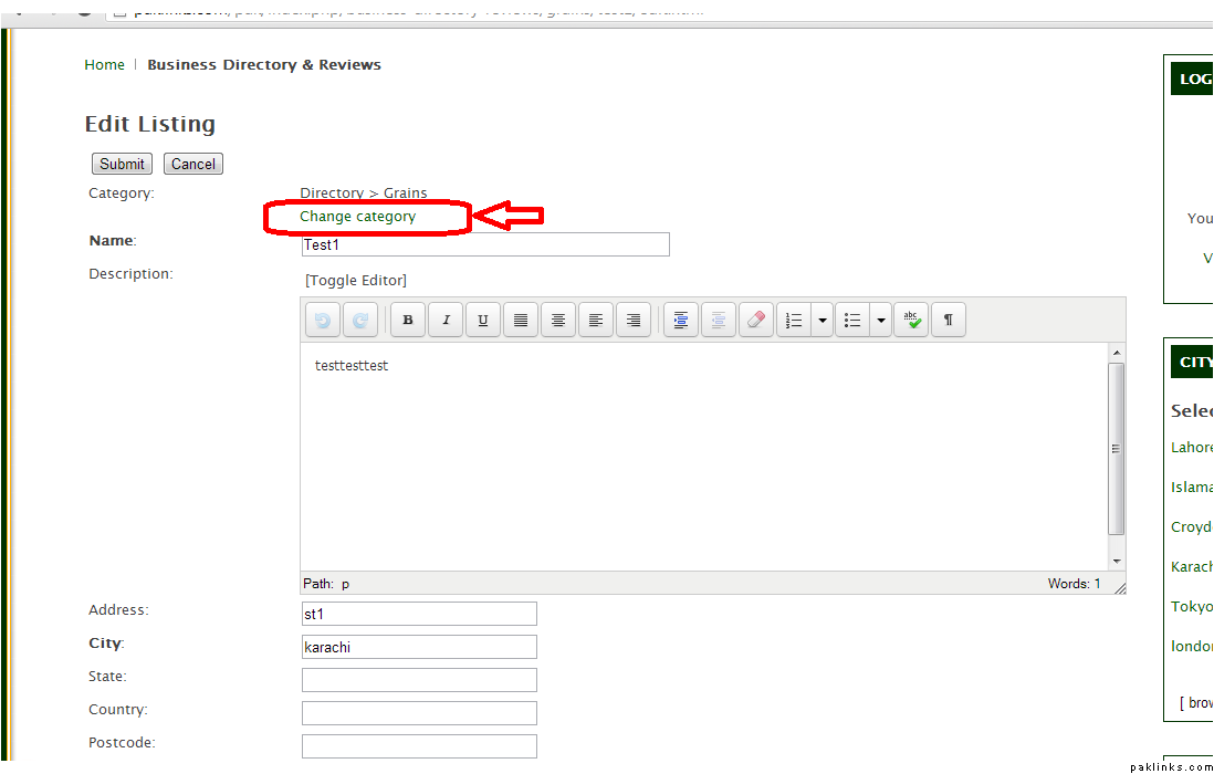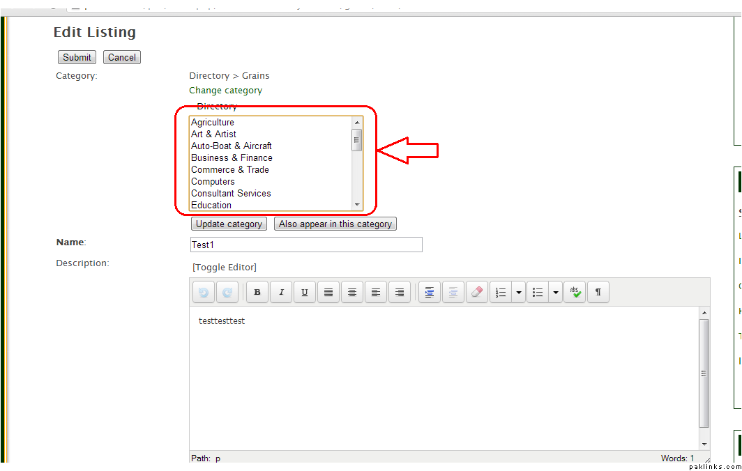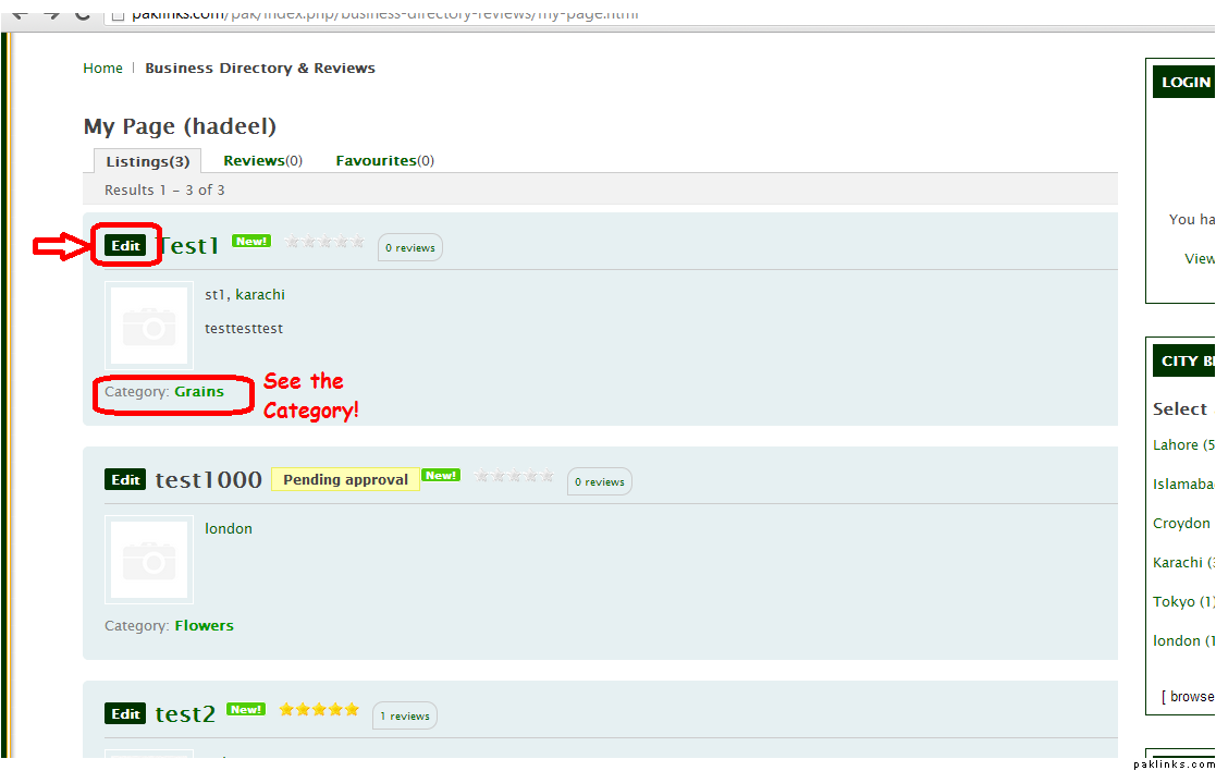When the new page opens up.. you see all your listings. Now for example, I want to change the category of Test1 Listing. Click EDIT.