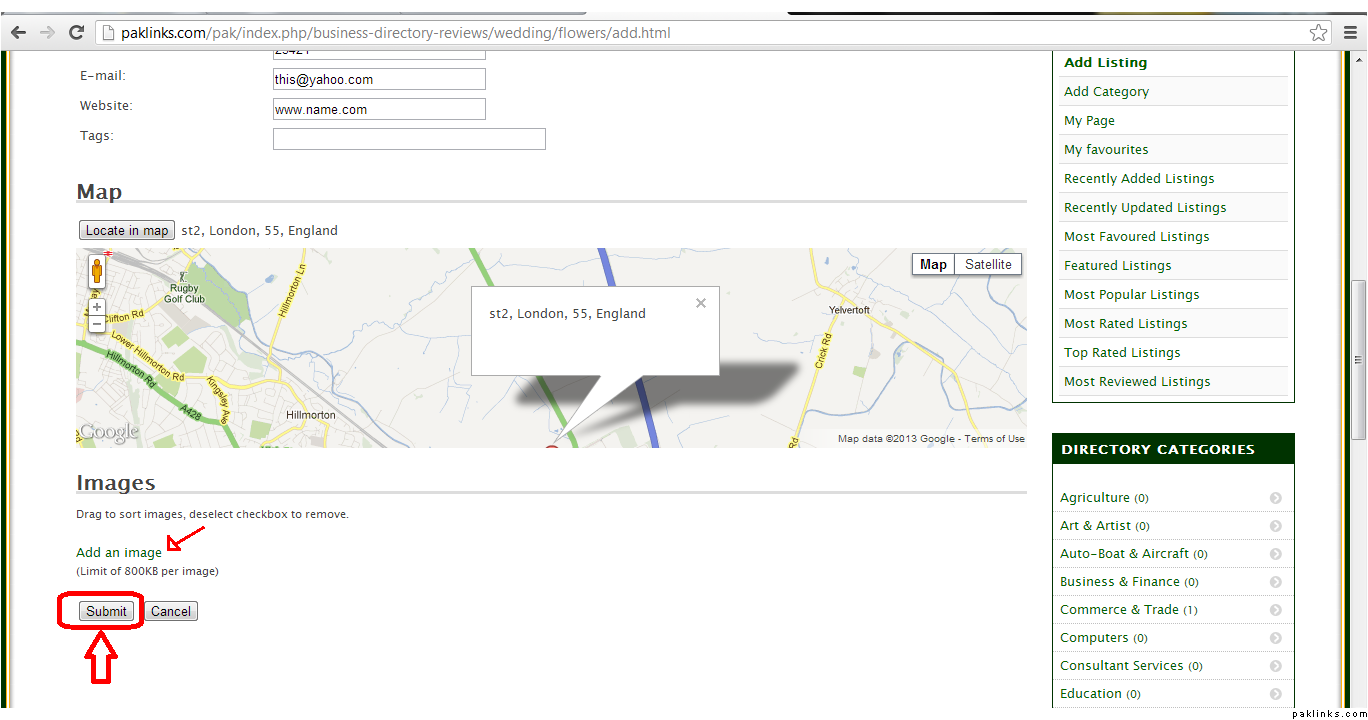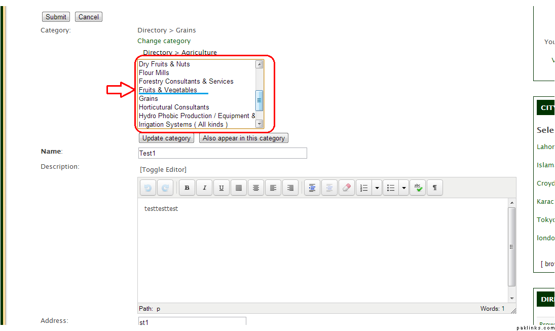Now say you want to add a listing for your business, you choose the appropriate category from the existing category list:
